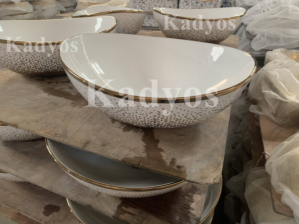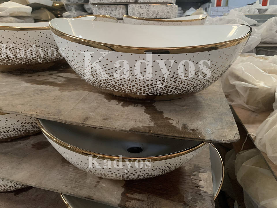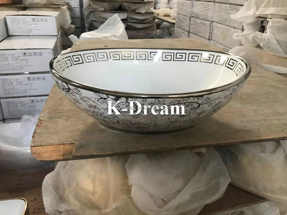 KD-29GBC Noble Hotel Sanitary Ware Gold Plated Ceramic Washbasins Bathroom Sinks Price Lovely Moon Shape Counter Top Wash Bowl