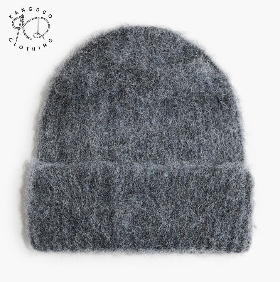 KD Knitwear Manufacturer Customizable Logo Travel Fluffy Fuzzy Rib Alpaca Blend Knit Mohair Beanie Hat