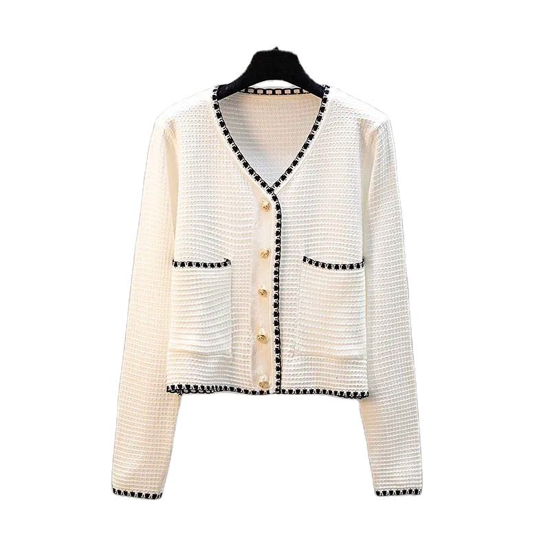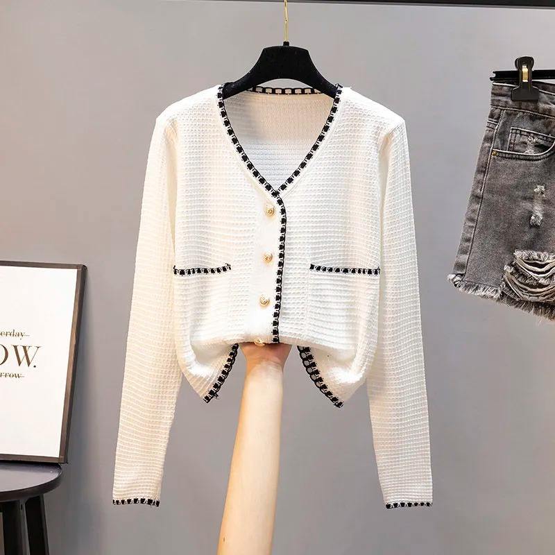 KD Pure White Korean Fashion Women's Sweater Cardigan Women's Knitting Cos Woman Long Sleeve Knitted Top Pullover