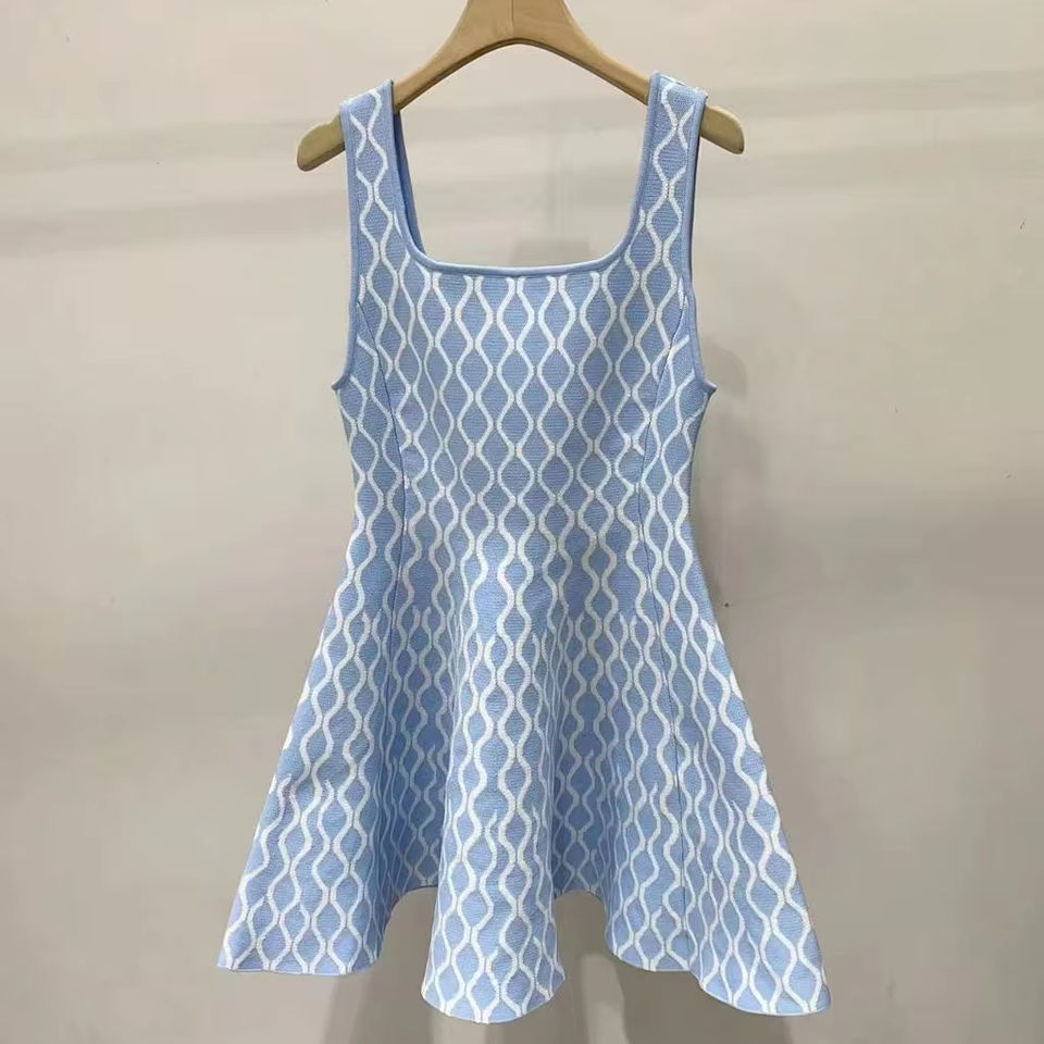 KD2260 High Quality Slip Dress Elegant Women Knitting Dresses Classy Lady Blue Dress Sleeveless Short Length