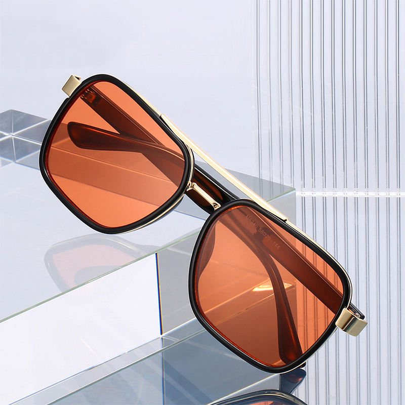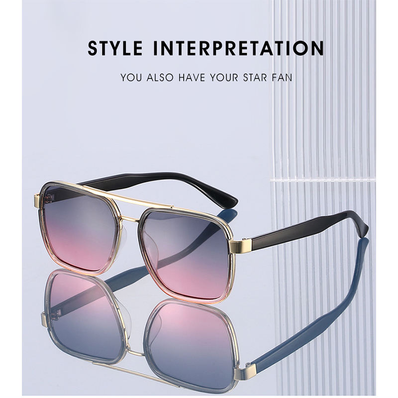 KD5240 Occhiali da Sole Retrò con Doppio Ponte, Montatura Grande, Lenti in PC, Protezione UV400 Anti-UV, Occhiali da Pilota per Uomo e Donna