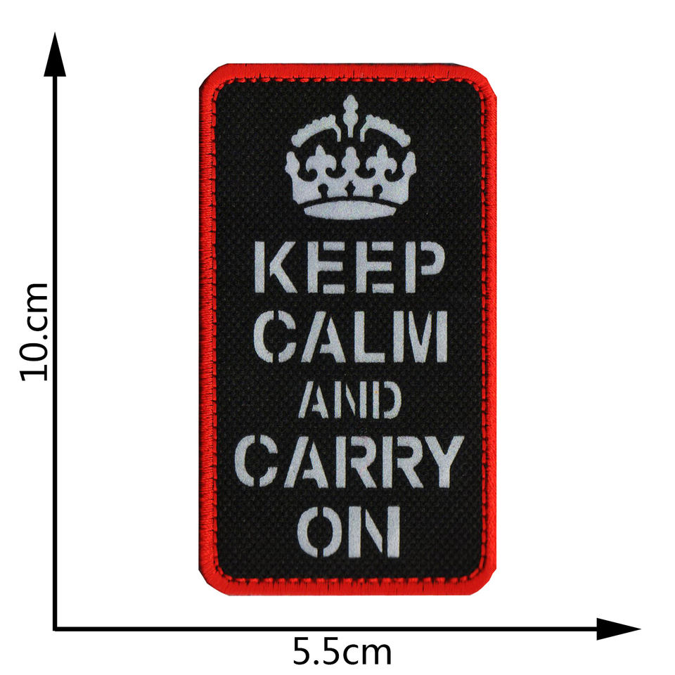 Mantenere la calma e portare avanti le toppe del distintivo del bracciale del gancio e del passante del ricamo del Morale tattico