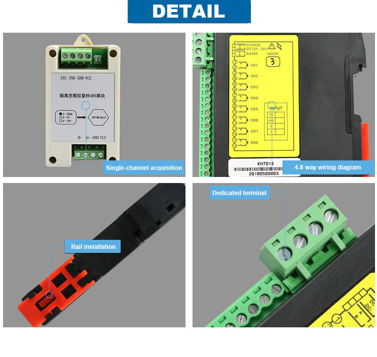 KEHAO Optical Isolated 1 Channel Data Acquisition 0-10V/4-20mA Input Modbus Rs485 Analog Signal Converter Digital Signal Rail