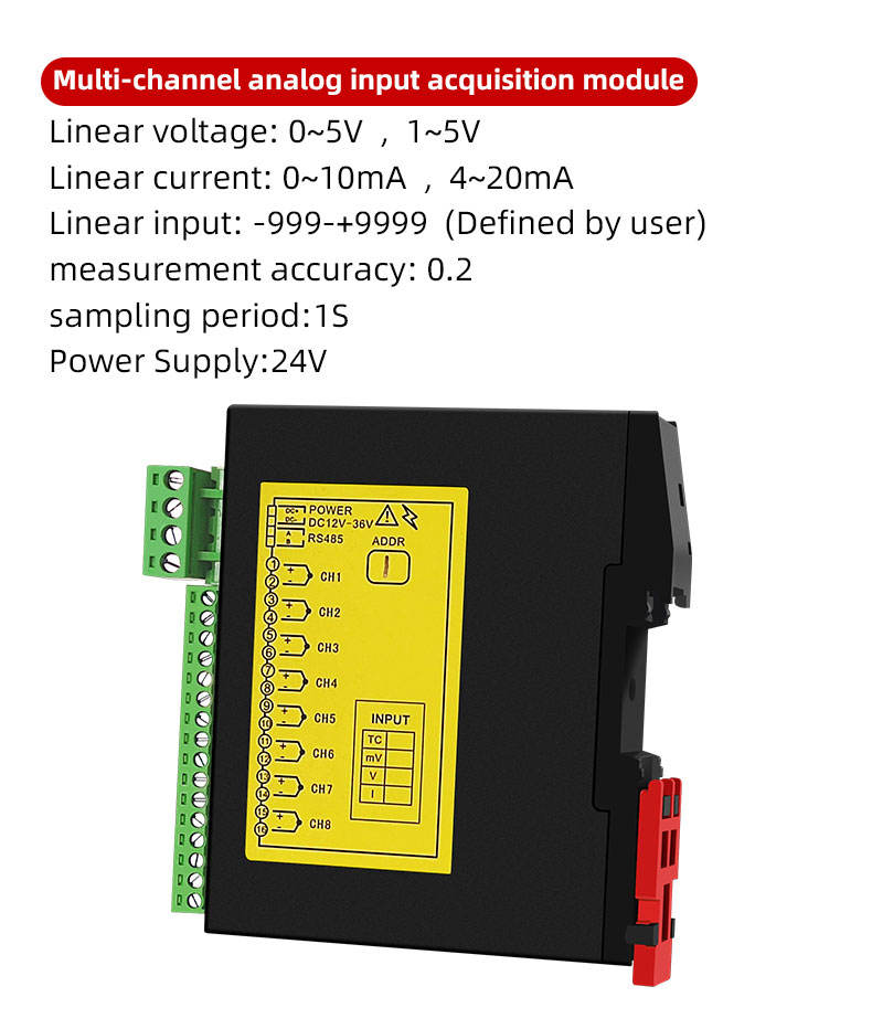Analog input:4-20mA, 0-10mA, 0-5VDC, 1-5VDC, 0-20mV, 0-50mV, 0-100mV, 0-500mV