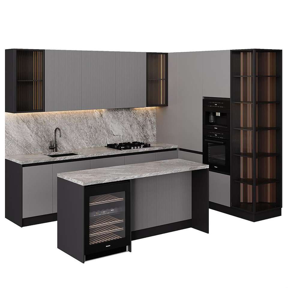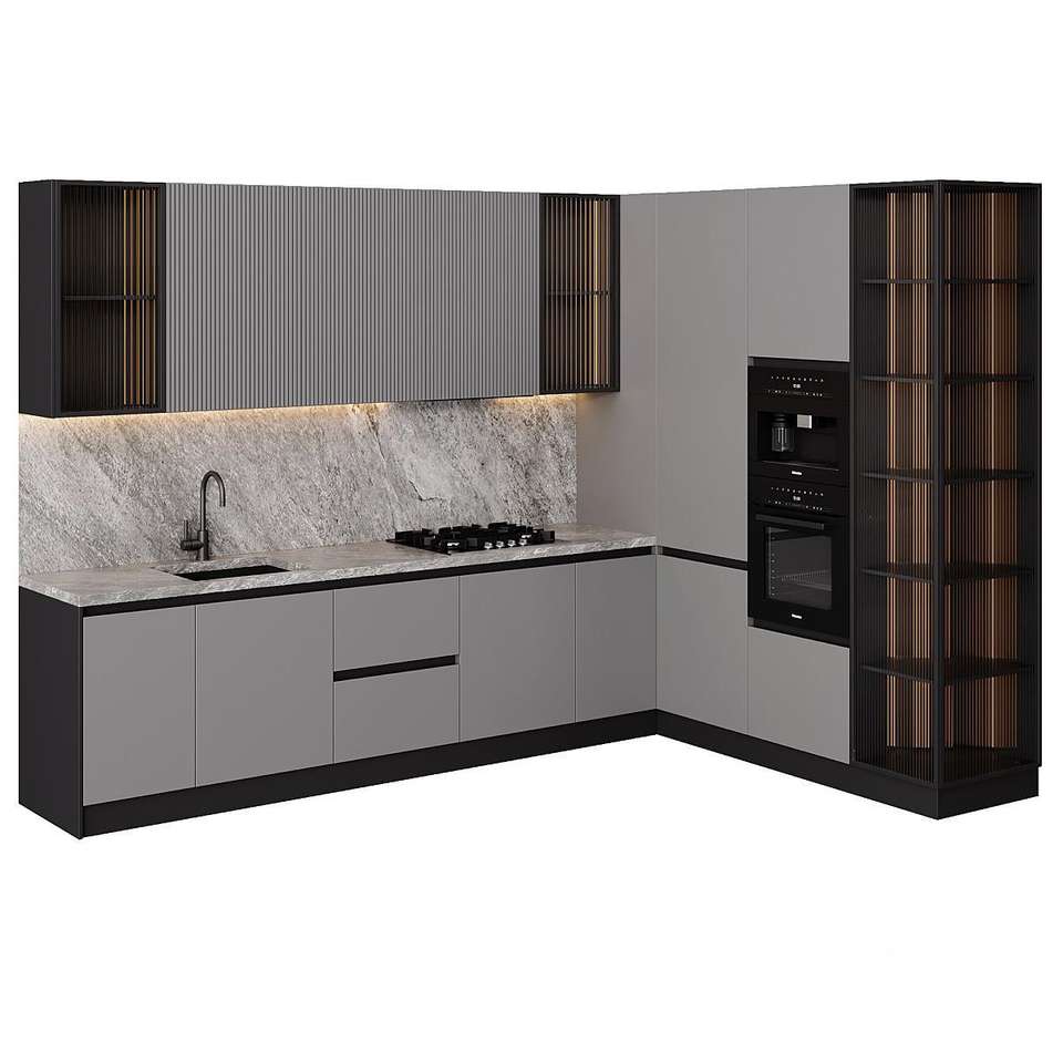 KEJIA Mobili da Cucina Modulari Minimalisti Grigio Opaco con Texture Legno a Doghe per Progetti di Design d'Interni Architettonici