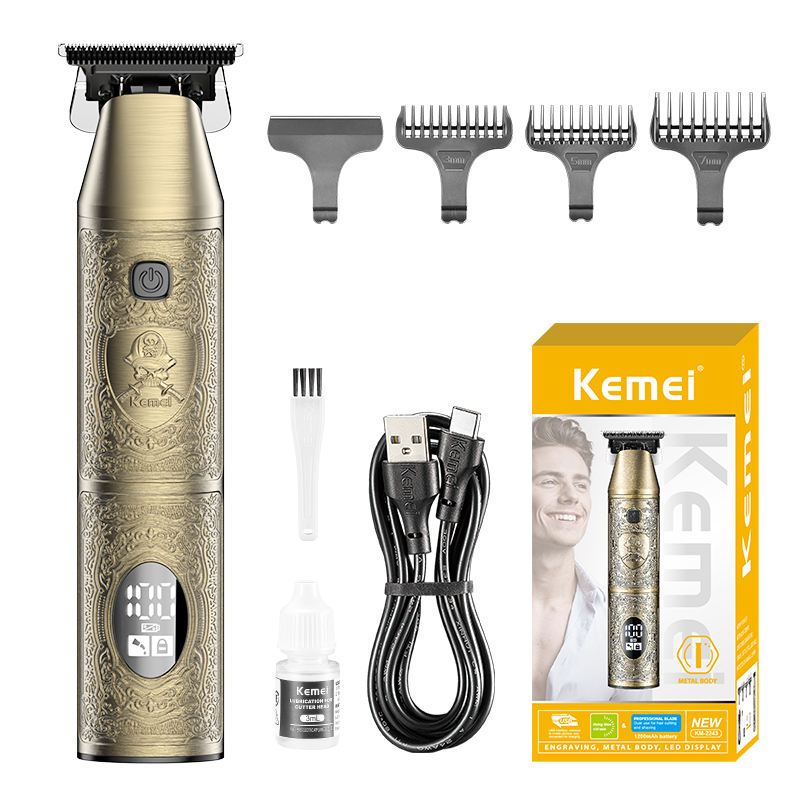 KEMEI Km-2243 1200mAh Battery Profesional Shaver European Trimmer Usb Hair Clipper Hairdresser Vintage T9 Metal Body Hair Cutter