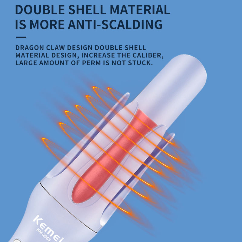Arricciacapelli Automatico KEMEI con Display LCD e Regolazione della Temperatura Km-2063, Bacchetta Elettrica Automatica in Ceramica
