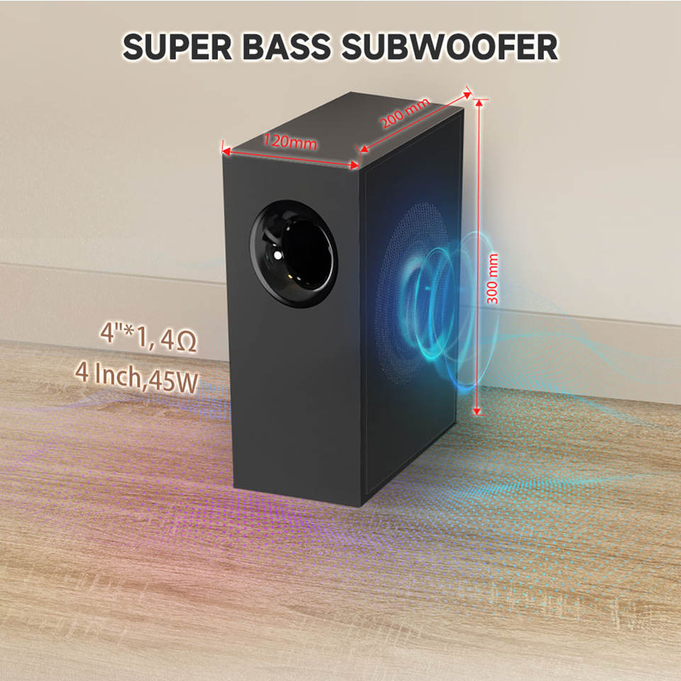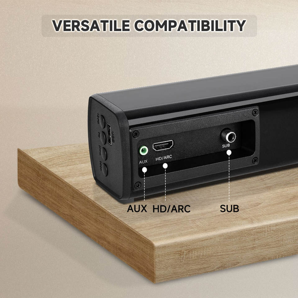 Versione Bluetooth 5.3: Dotata di Bluetooth 5.3, questa sbarra acustica offre una connessione wireless stabile e veloce per lo streaming audio senza interruzioni da dispositivi compatibili.