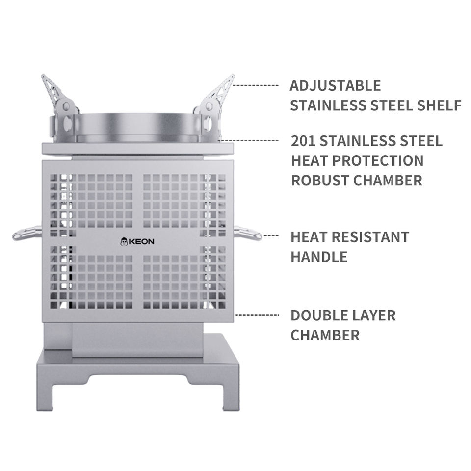 Stufa a legna portatile moderna autoportante KEON in acciaio inox 201 per tenda da campeggio, piccola, ecologica, per uso in villa