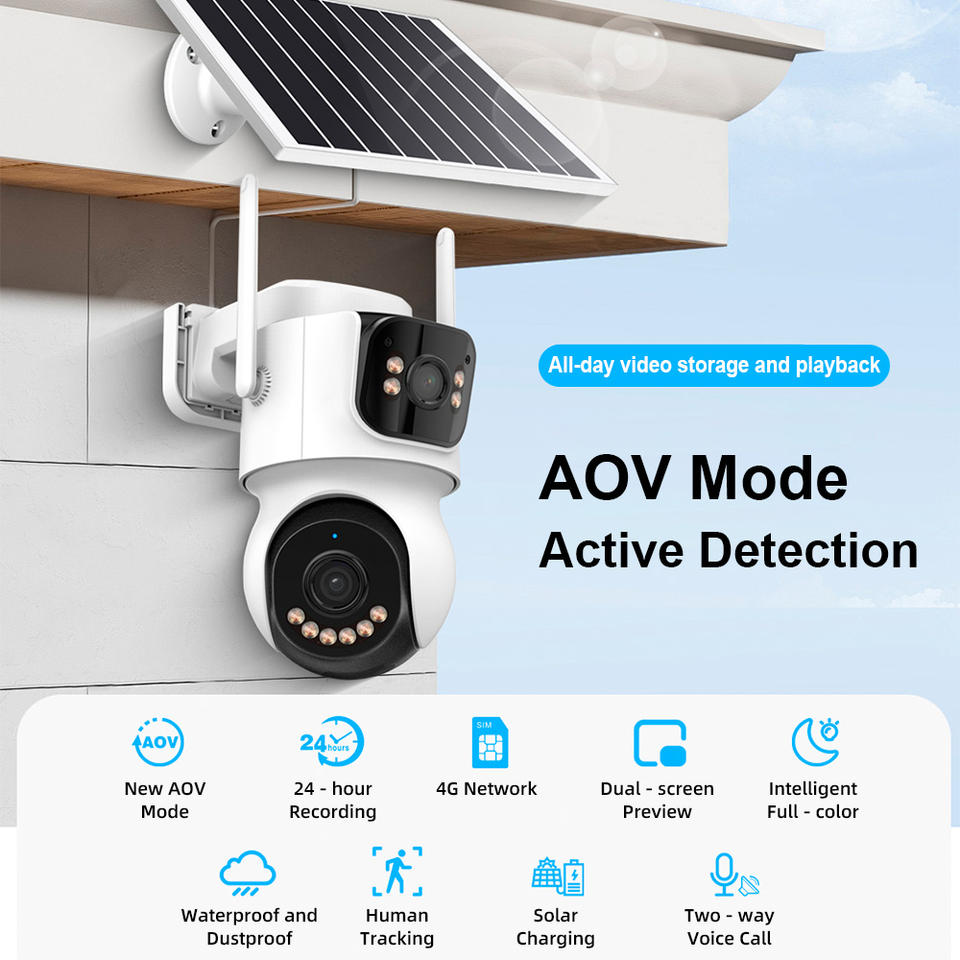 Telecamera Solare Wireless 4G KERUI TQ9 AOV 4MP ICsee PTZ Esterna a Doppia Lente con Rilevamento Umano per Sorveglianza di Sicurezza su Rete