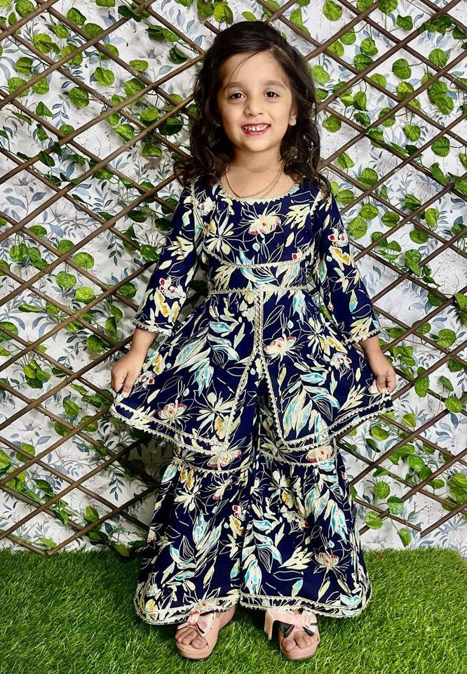 KIDS Girls Wear up Coming Festive Wear 2024 Latest Ethnic Cotton Printed Girls Kids Kurti Pant Set South Asian Fashion