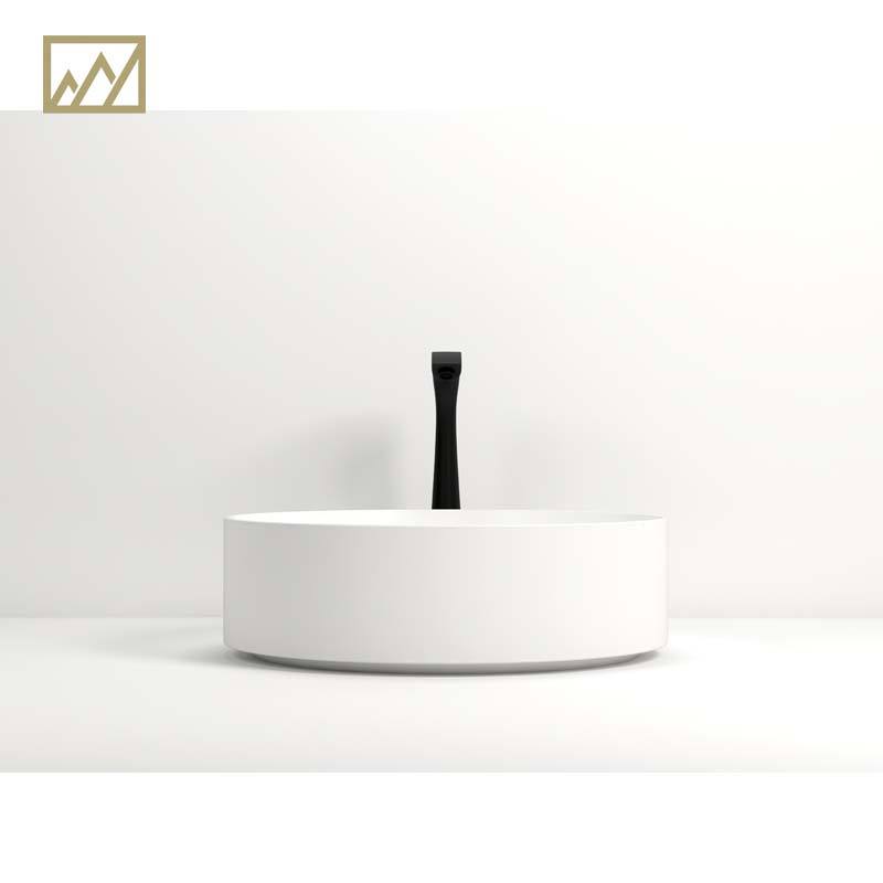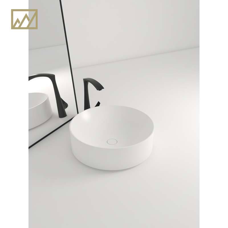 KINGS-WING Wholesale Chip Quartz Stone Slim Rim Bathroom Sink Round Vessel Sink