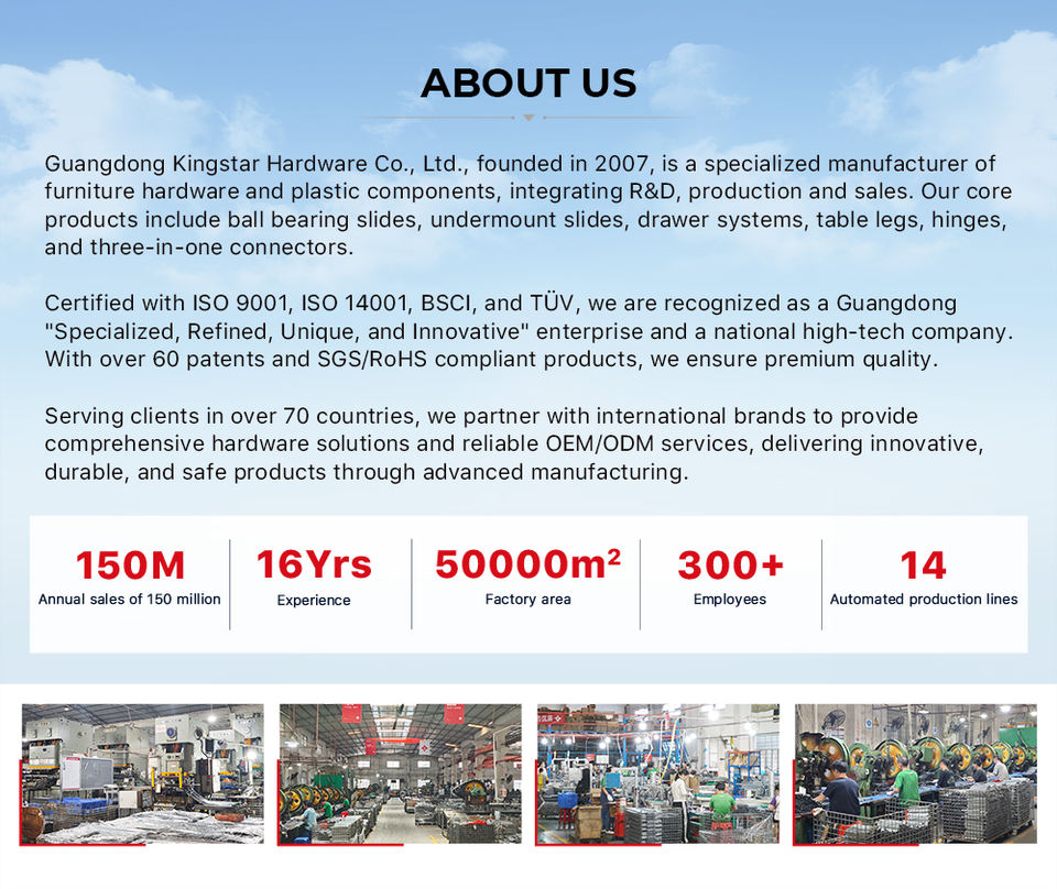 Sistema di cassetti KINGSTAR 1.5mm ultra sottile in metallo, moderno, con chiusura ammortizzata e regolazione 3D per cucina, soggiorno e appartamento