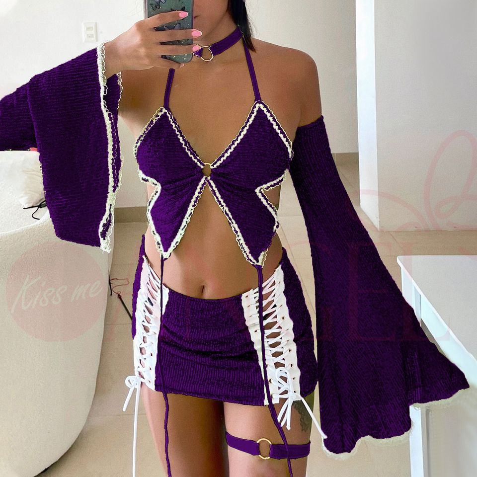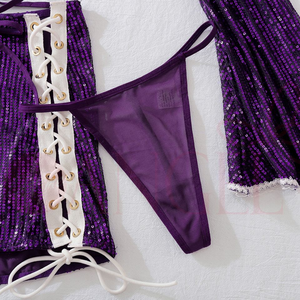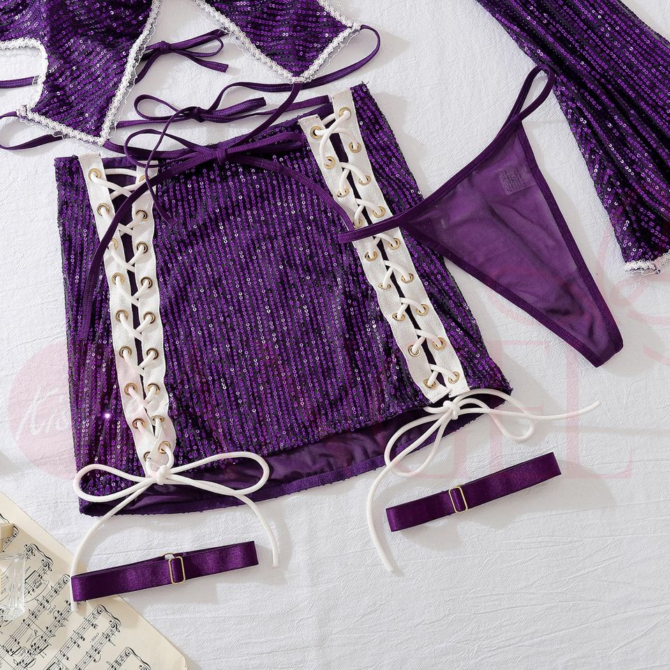 One Set = Top + G-string + Dress + Leg Ring + Sleeve