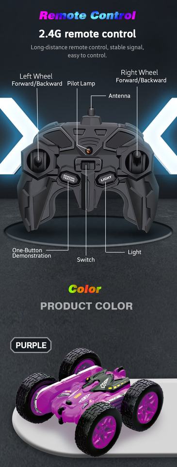 KK auto telecomandata a doppio lato con telecomando con luci lampeggianti telecomando Drift car; Auto telecomandate per bambini