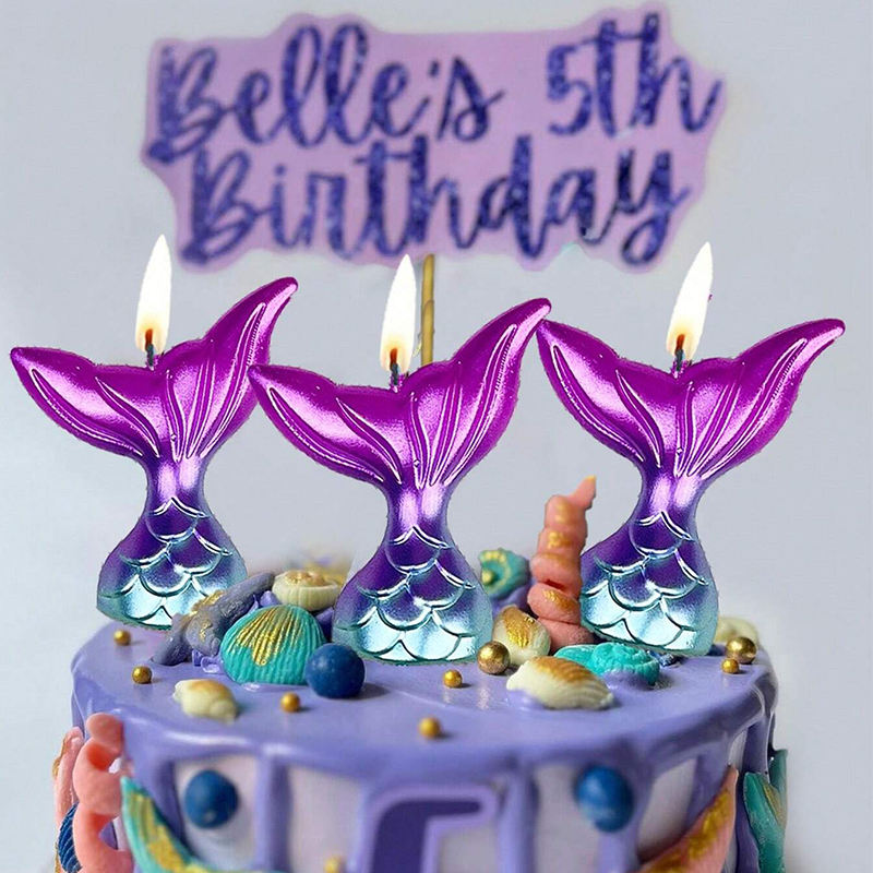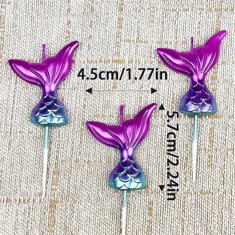 KLS 3 pz candele per torta di compleanno a forma di coda di colore sfumato per decorazioni per feste a tema oceano di fascia alta