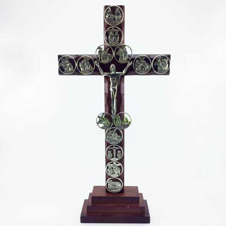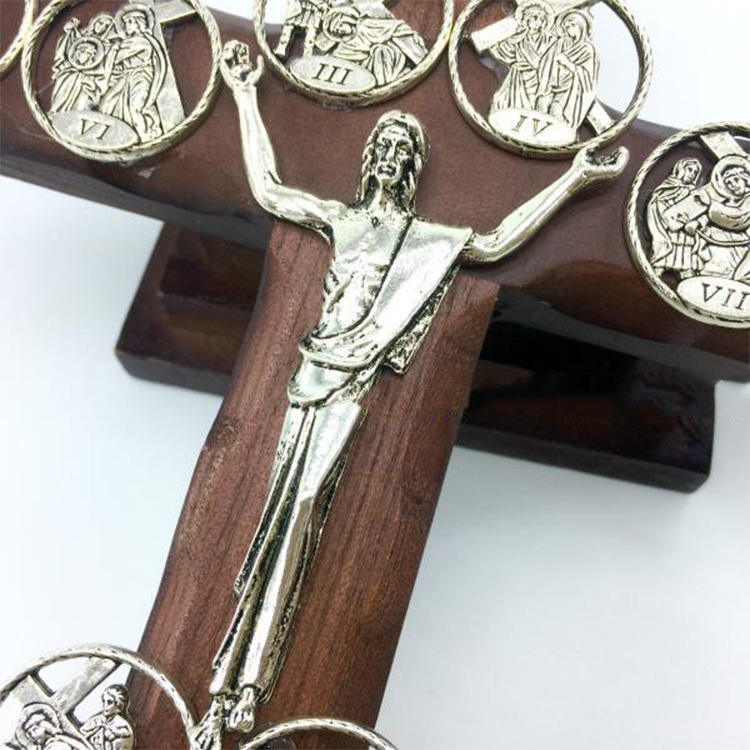 KOMI in legno massello incastonato in lega di zinco quattordici tramite Dolorosa statue galleggianti parete in piedi croce decorazione