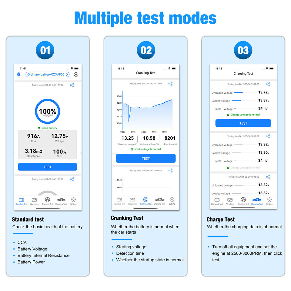 Main Function:Battery test & Cranking test & Charging test