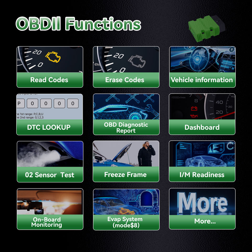 Combinazione:Codice lettore, OBD2, Eobd, Controlla la luce del motore