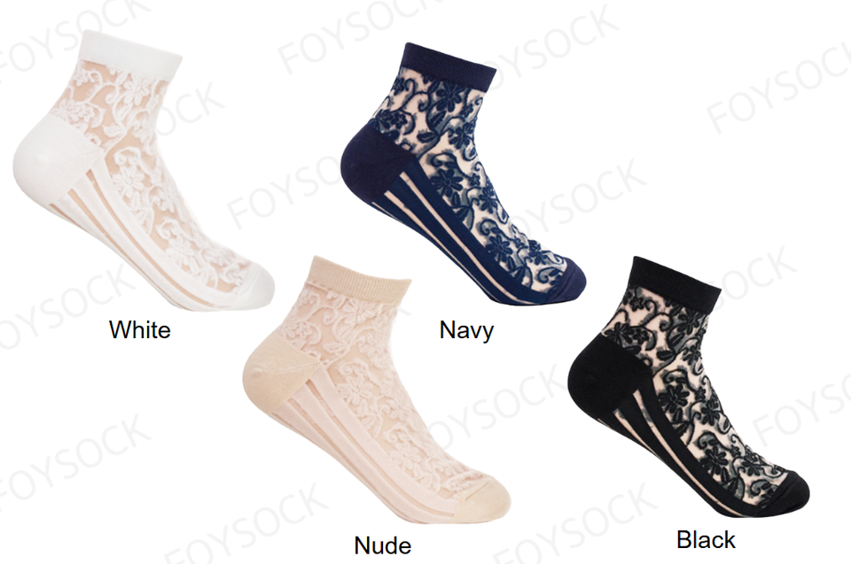 KOREA FOYSOCK Custom Embroidered Logo Oem Design Sheer Floral Lace No-Show Mesh Invisible Lace Low-Cut 3D Floral Women's Socks