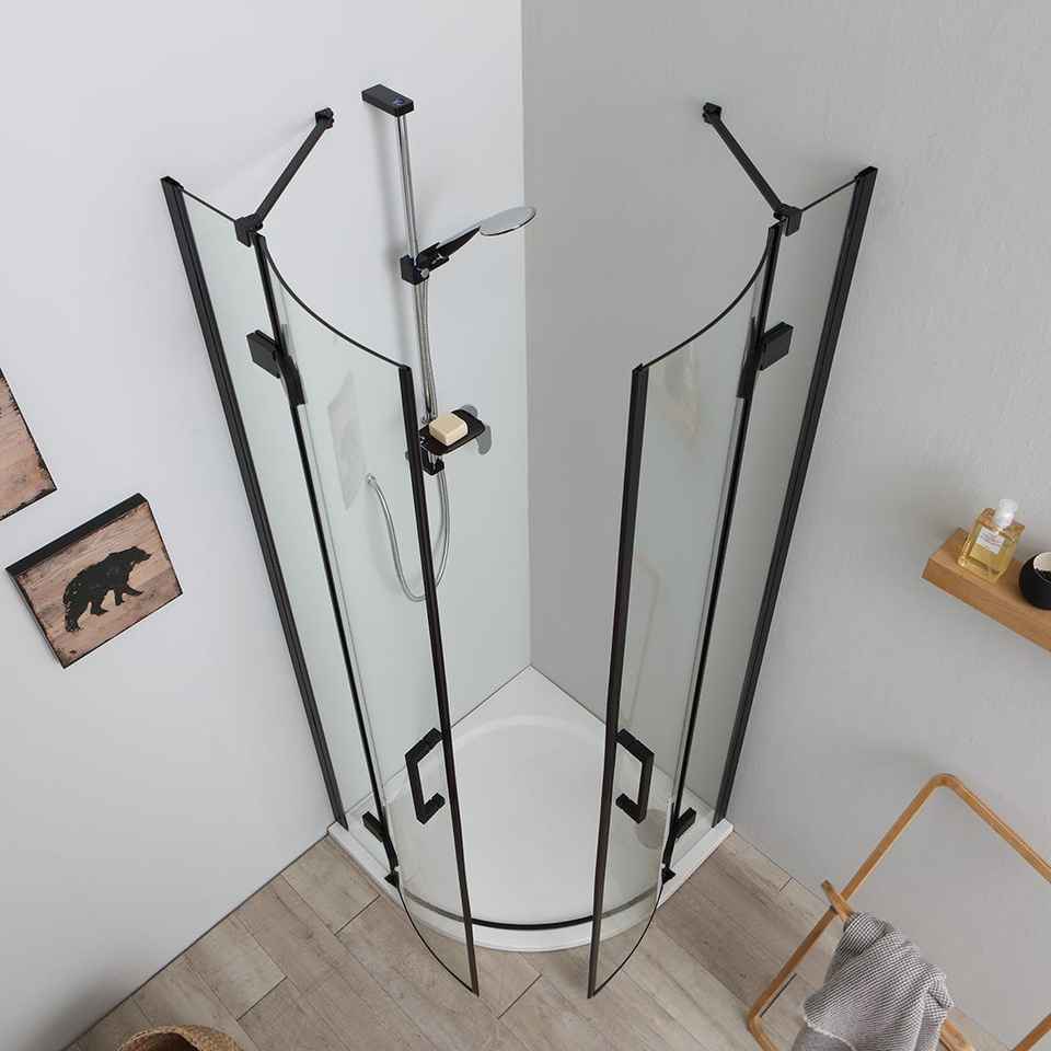 KORICINI 80x80 Minimalist Durable Corner Shower Enclosure with 6mm Lion Glass Matt Black Without Profiles