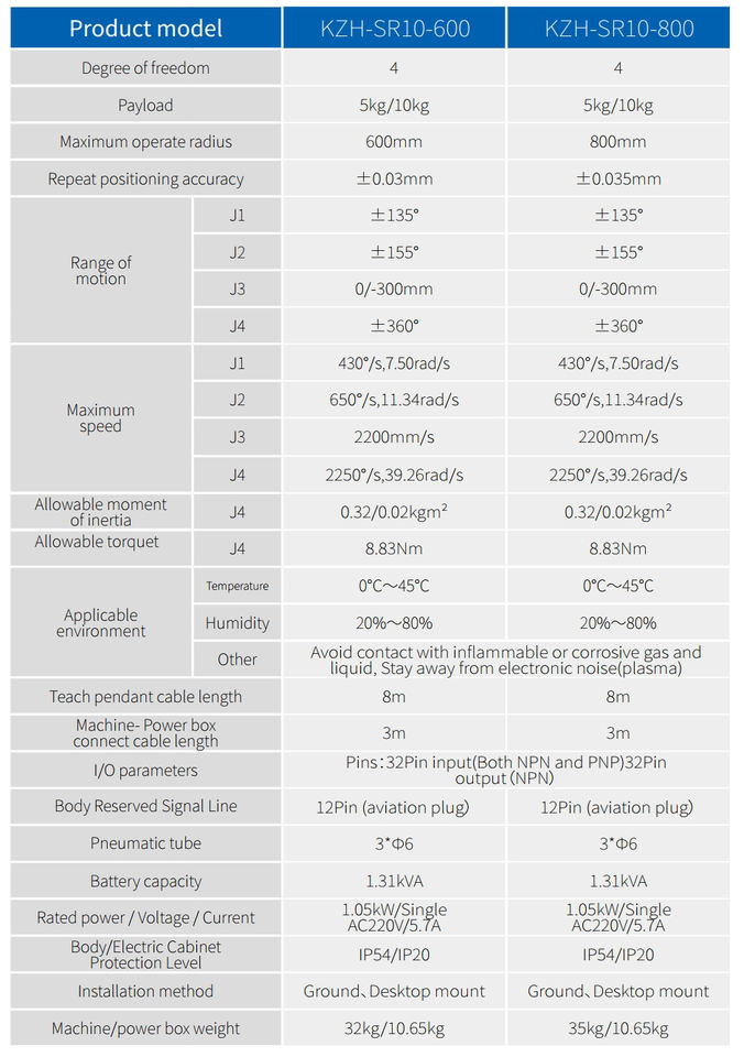 KOZA a Scara braccio robotico sistema con servomotore avanzato e riduttore ad alta velocità e alta precisione 10kg carico utile 600mm portata