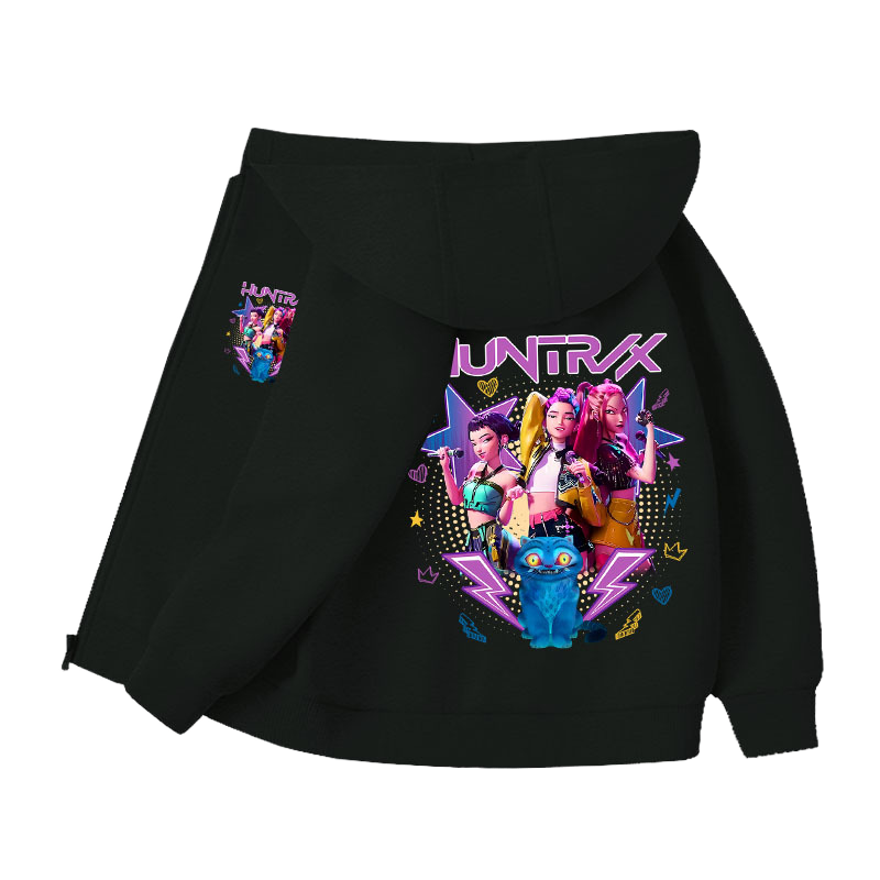 Felpa con Cappuccio Invernale da Donna KPOP Demon Hunters, Manica Lunga, Tessuto Intrecciato, Colletto con Bottoni e Zip, Modello PK
