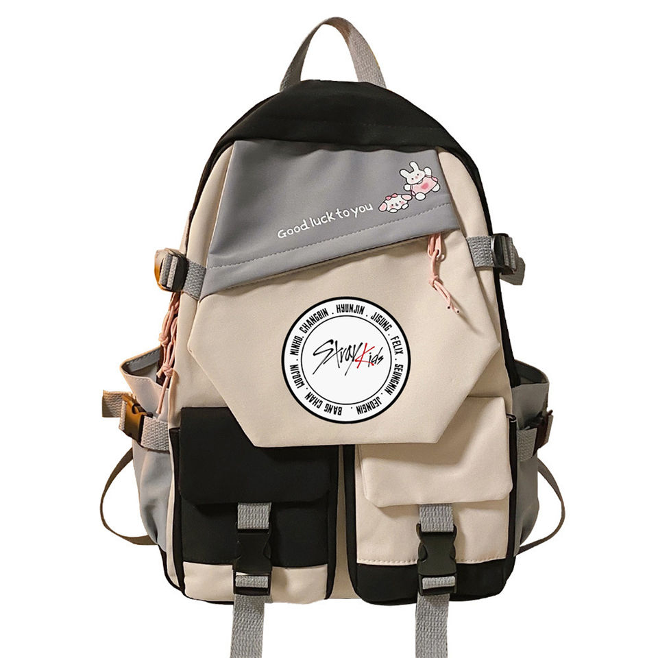 Zaino con zip XXDF0168 nylon 42×31×14 cm, 450 g – Unisex KPOP Stray Kids stampa cartoon, impermeabile, confezione 5 pz