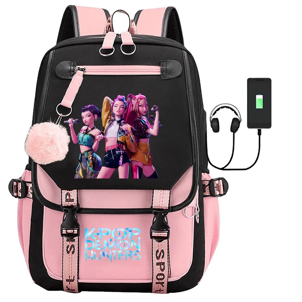 Zaino KPop Witch Hunter con stampa all'ingrandimento, in tessuto Oxford, con pompon, traspirante, per ridurre il peso, per studenti e campus