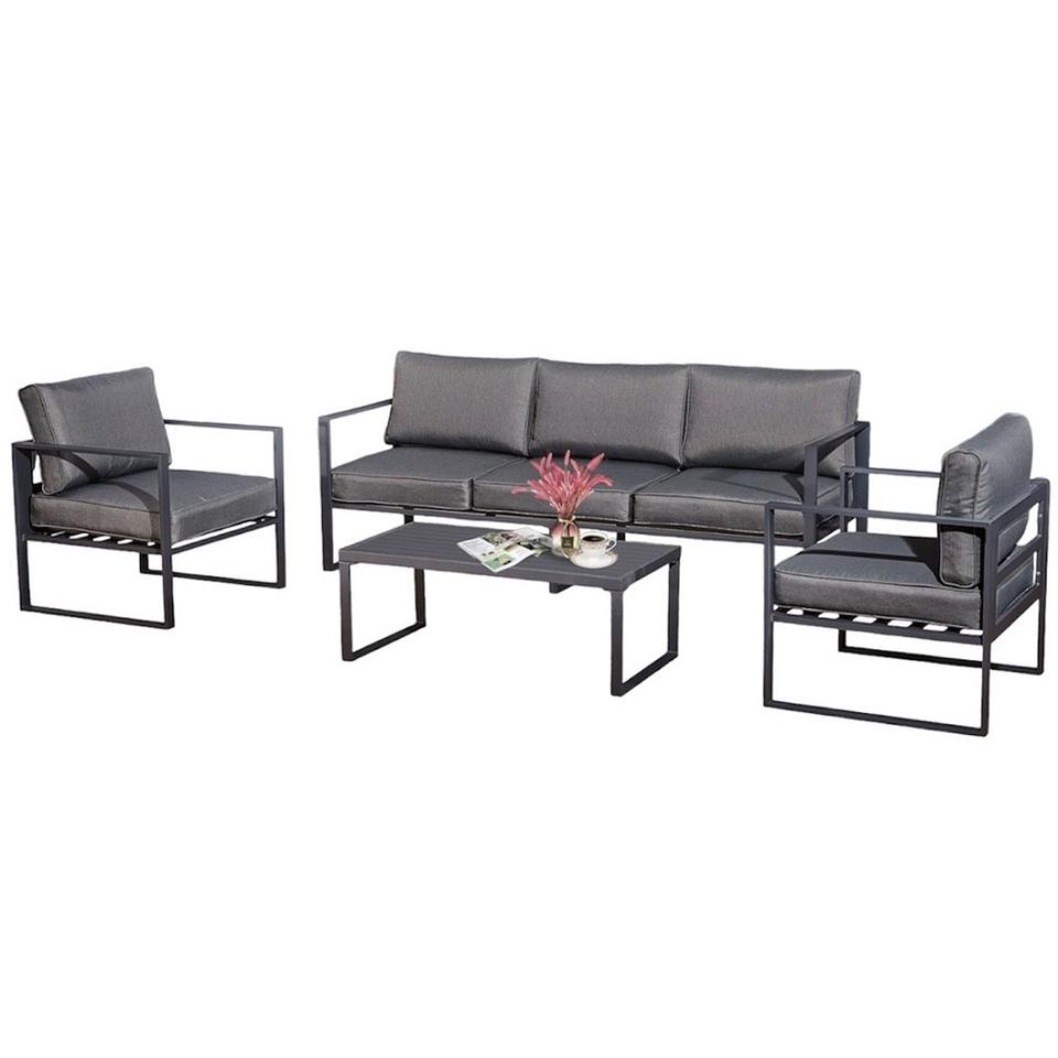 KRETA II Gruppo di Sedute da Giardino in 4 Pezzi Antracite, Set Divano Lounge Resistente per Terrazza o Balcone