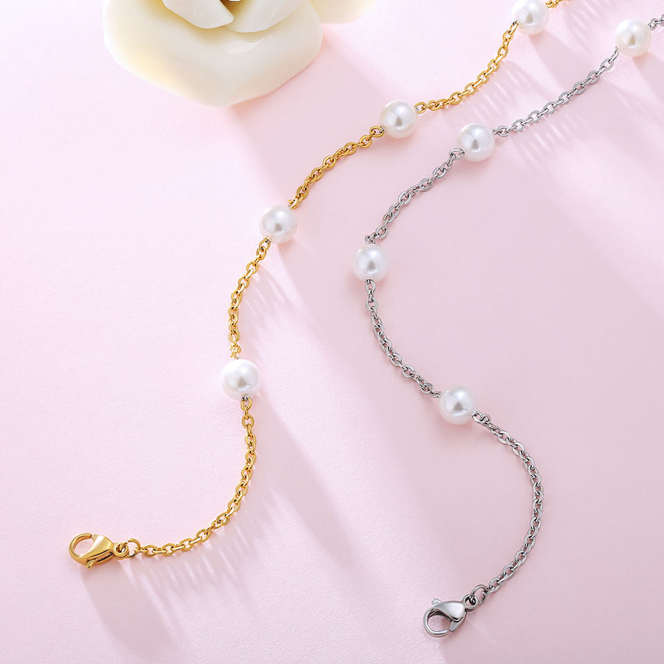 KRKC Commercio All'ingrosso 1.7 millimetri di trasporto Del Nastro 18K Oro Placcato In Acciaio Inossidabile Perla Cavo Catena Alla Caviglia Cavigliera Braccialetto con Charms di Perle per le Signore
