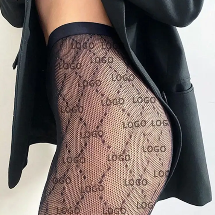Kaite Collant a rete KT-T250007 con logo personalizzabile e stampa lettere per donna, lusso, design moda, MOQ 100 paia