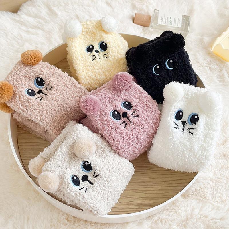 KTS193 Manufacturers OEM Custom Cat Embroidery Series 3D Ears Winter Coral Velvet Microfiber Cartoon Warm Fuzzy Socks for Women