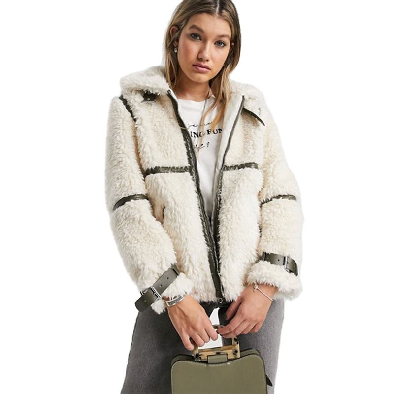 Cappotti KY da donna con colletto spalancato con chiusura a Zip con tasche funzionali fibbie invernali in pelle Borg Coa giacca in pile da donna