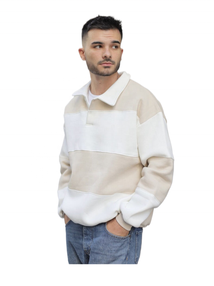 KY OEM Oversized Long Sleeve College Football Jersey Knitted Sweatshirt with Contrast Stripe for Polo Collar Big Size Rugby Shir