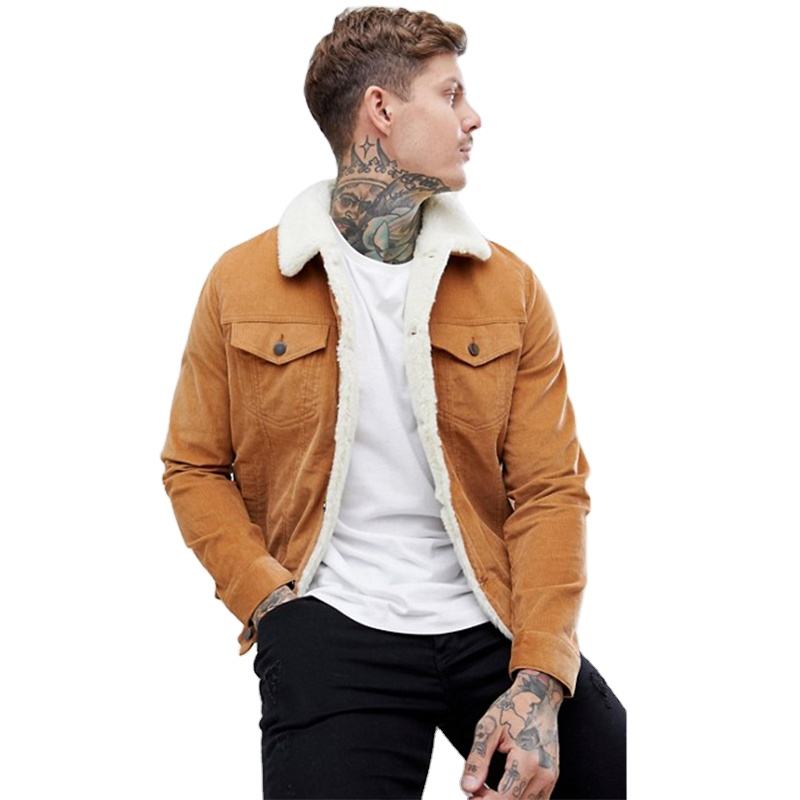 Giacca Bomber da esterno per uomo invernale impermeabile in velluto a coste con fodera KY Borg funzionale abbottonatura e tasche