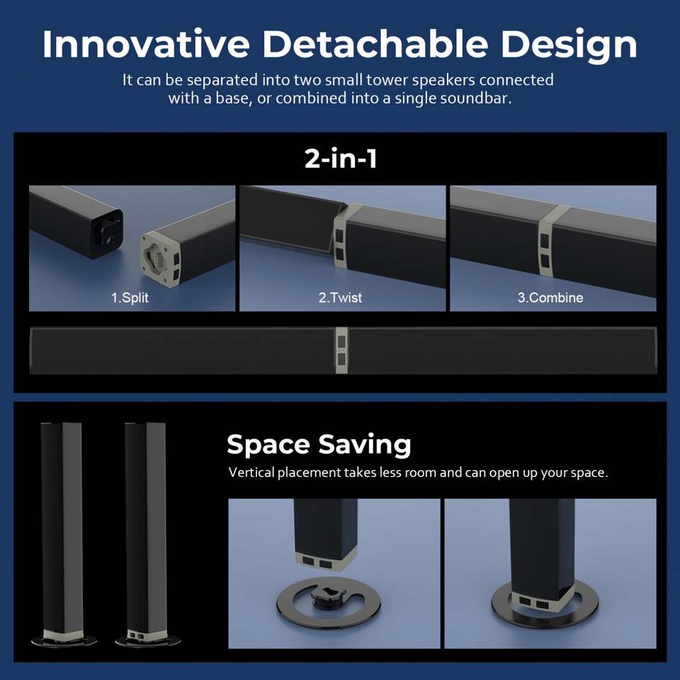 Meidong Soundbar KY2020D senza fili rimovibile per TV, sistema home theater surround, certificato CE/RoHS/FCC