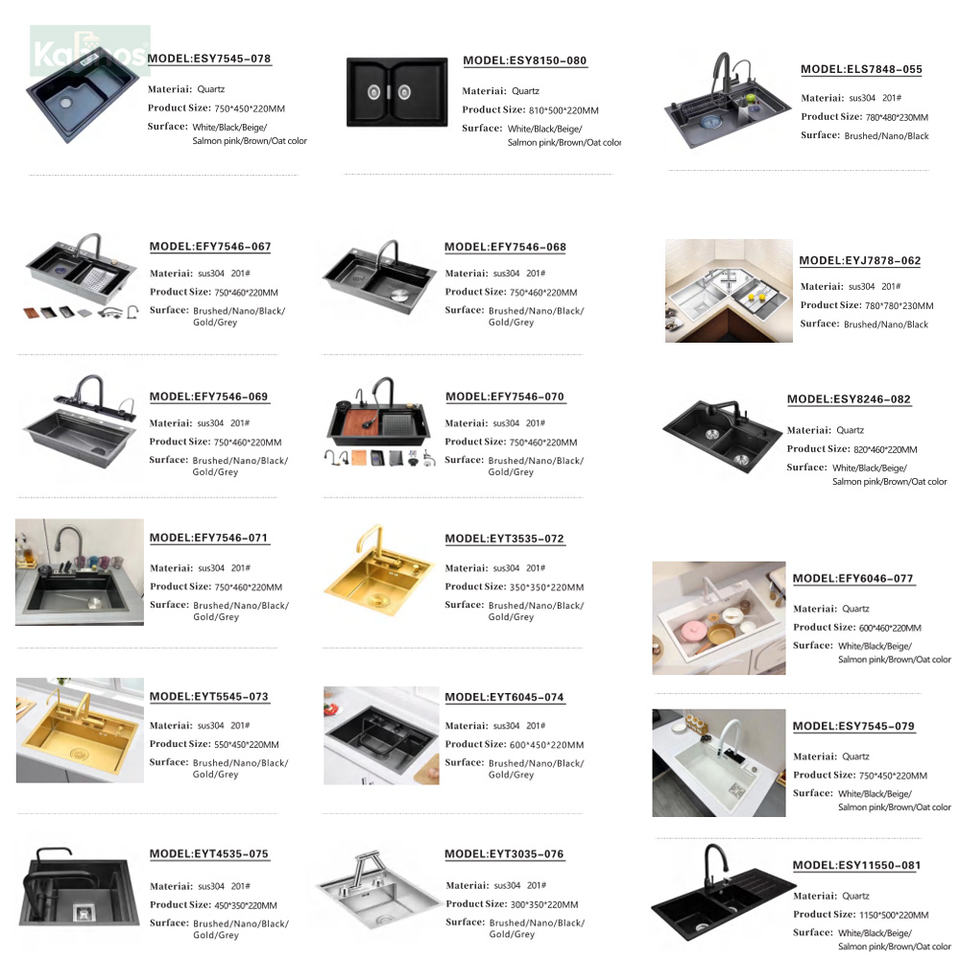 Kahnos lavello da cucina in acciaio inox 304 fatto a mano moderno a ciotola singola cascata multifunzione filtro intelligente sottopiano