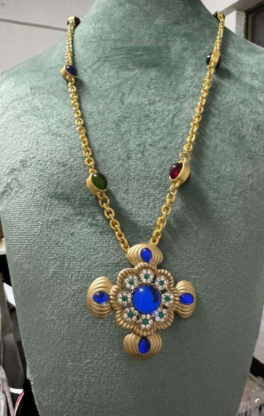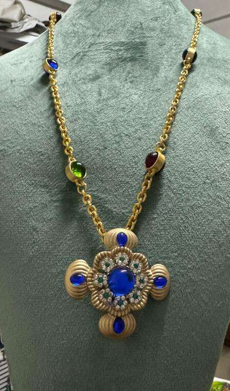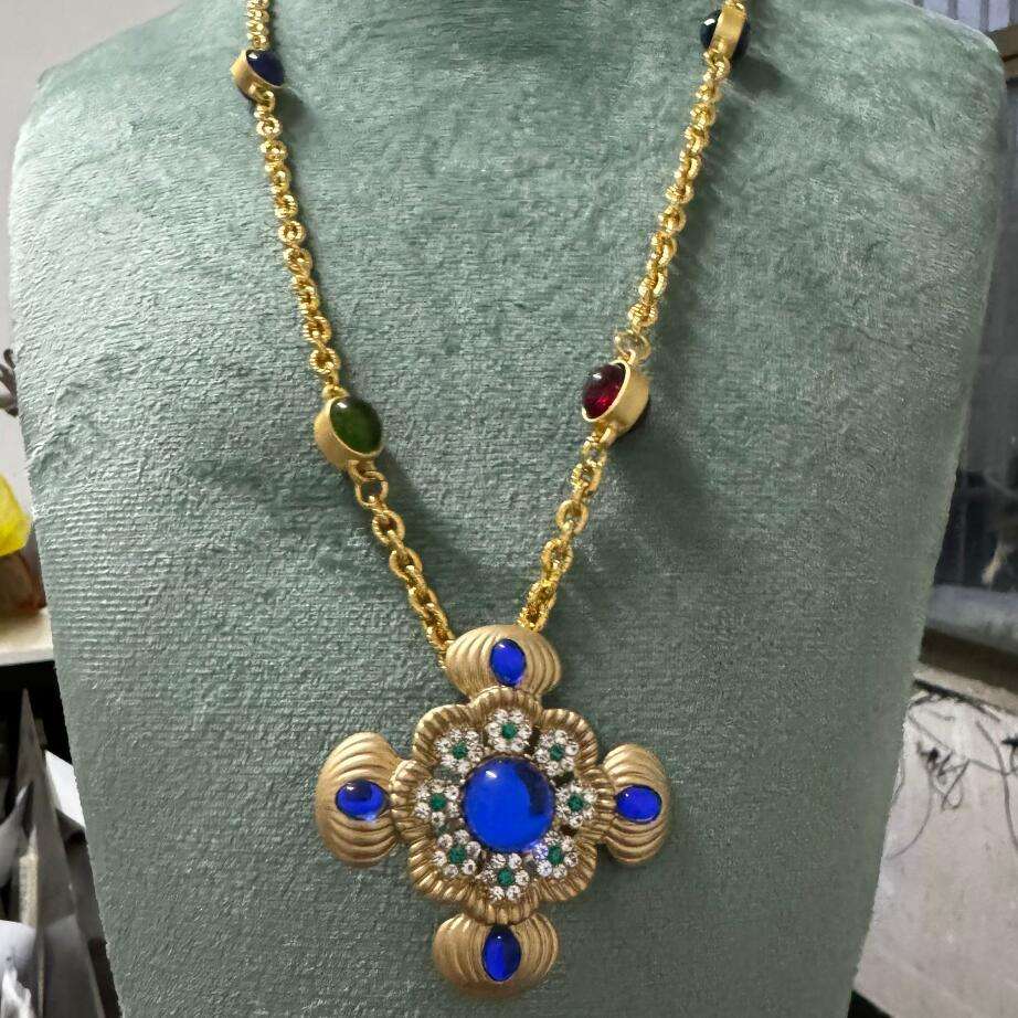 Kaimei 2025 Fashion Jewelry Fresh Handmade Blue Resin Pendant Necklace Handmade Colorful Gold Long Cross Blue Resin Necklaces