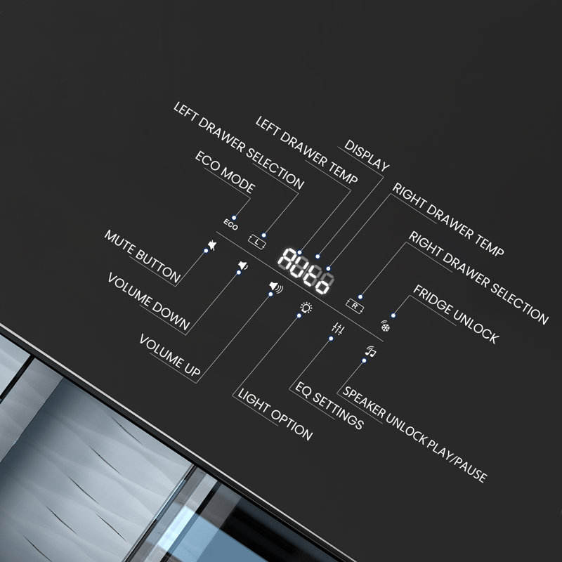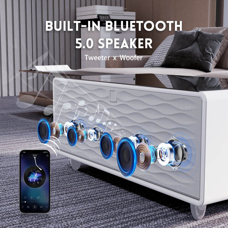 Tavolino da Caffè Intelligente Kainice con Frigorifero, Schermo Touch, Ricarica Wireless Mini, Porta USB, Arredamento per Hotel e Soggiorno
