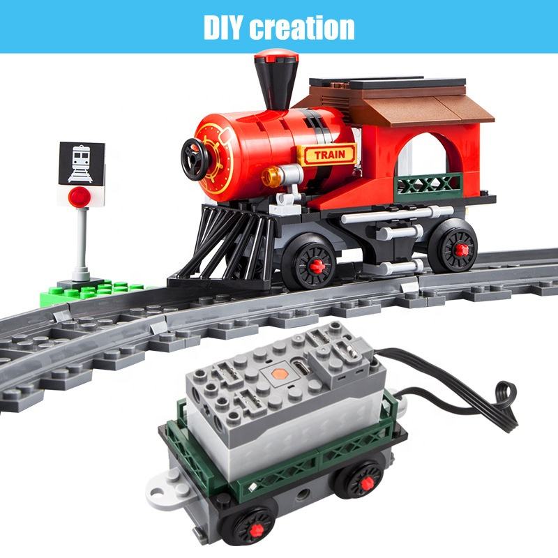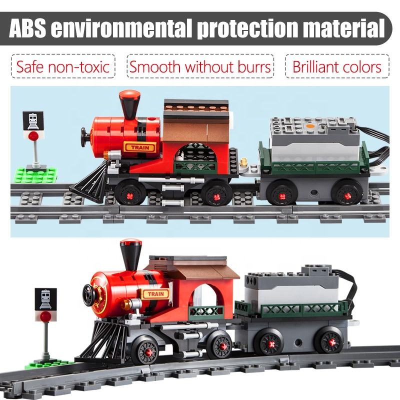 Descrizione:Binari del treno RC costruzione di mattoni a vapore educazione bambino giocattolo