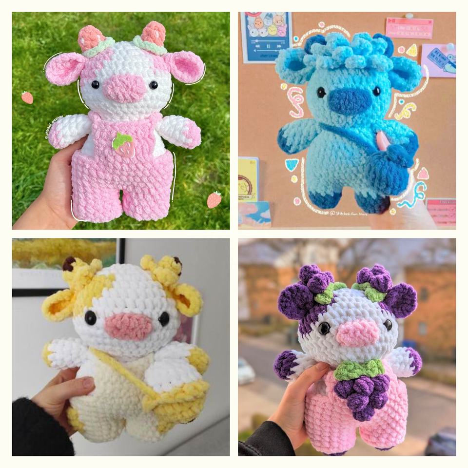 Kaiyue Custom Pink Plushie Cow Toy Strawberry Cow Amigurumi Crochet Doll with Plush Animal Stuffed Animal Toys