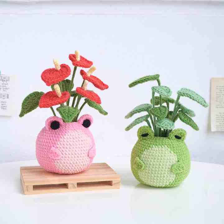 Kaiyue Cute Artificial Crochet Flower Kit Wobble Decoration Froggy Potted Knitting Flowers Bouquet Crochet Toy