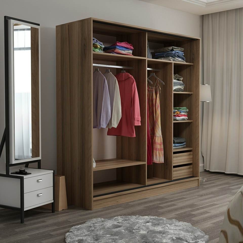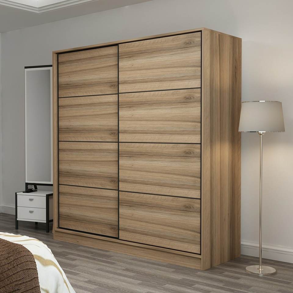 Kale 2-Door Sliding Wardrobe 210 cm Elegant Walnut Finish Spacious Storage Modern Sliding Wardrobe Folding Feature for Bedroom