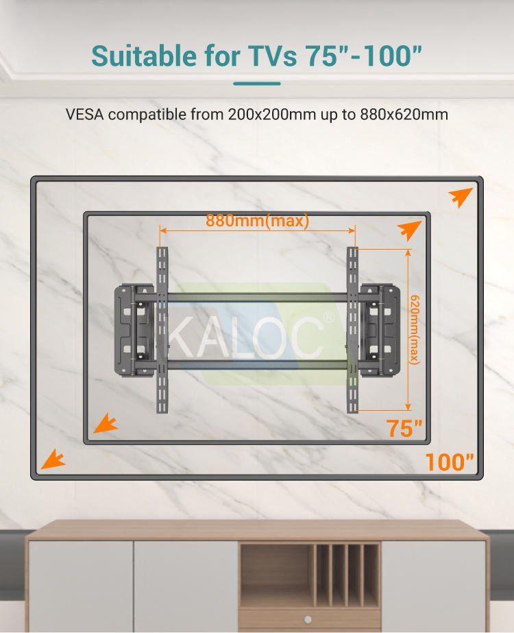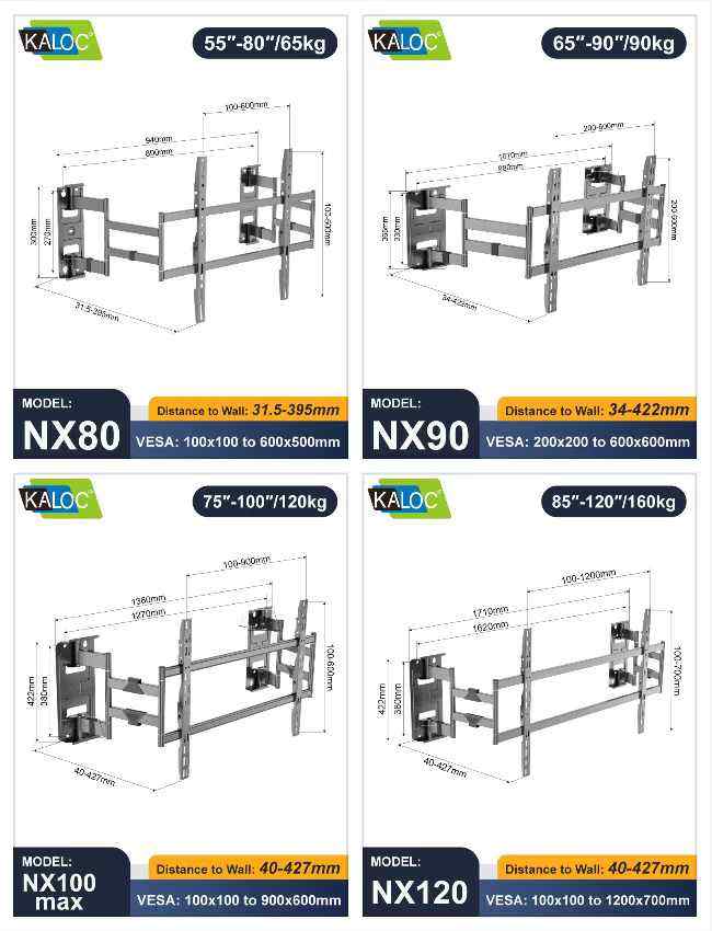 Kaloc NX100max Pull Down Long Arm Tv stand a parete Tv a 90 pollici di regolazione a parete supporto Tv staffa per soggiorno mobili
