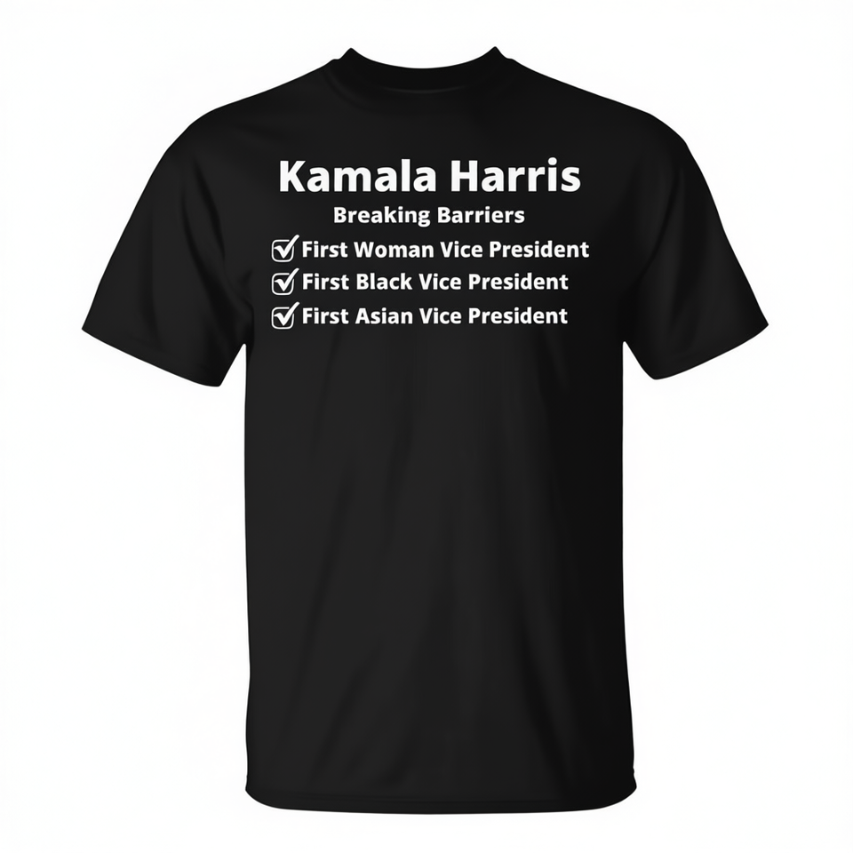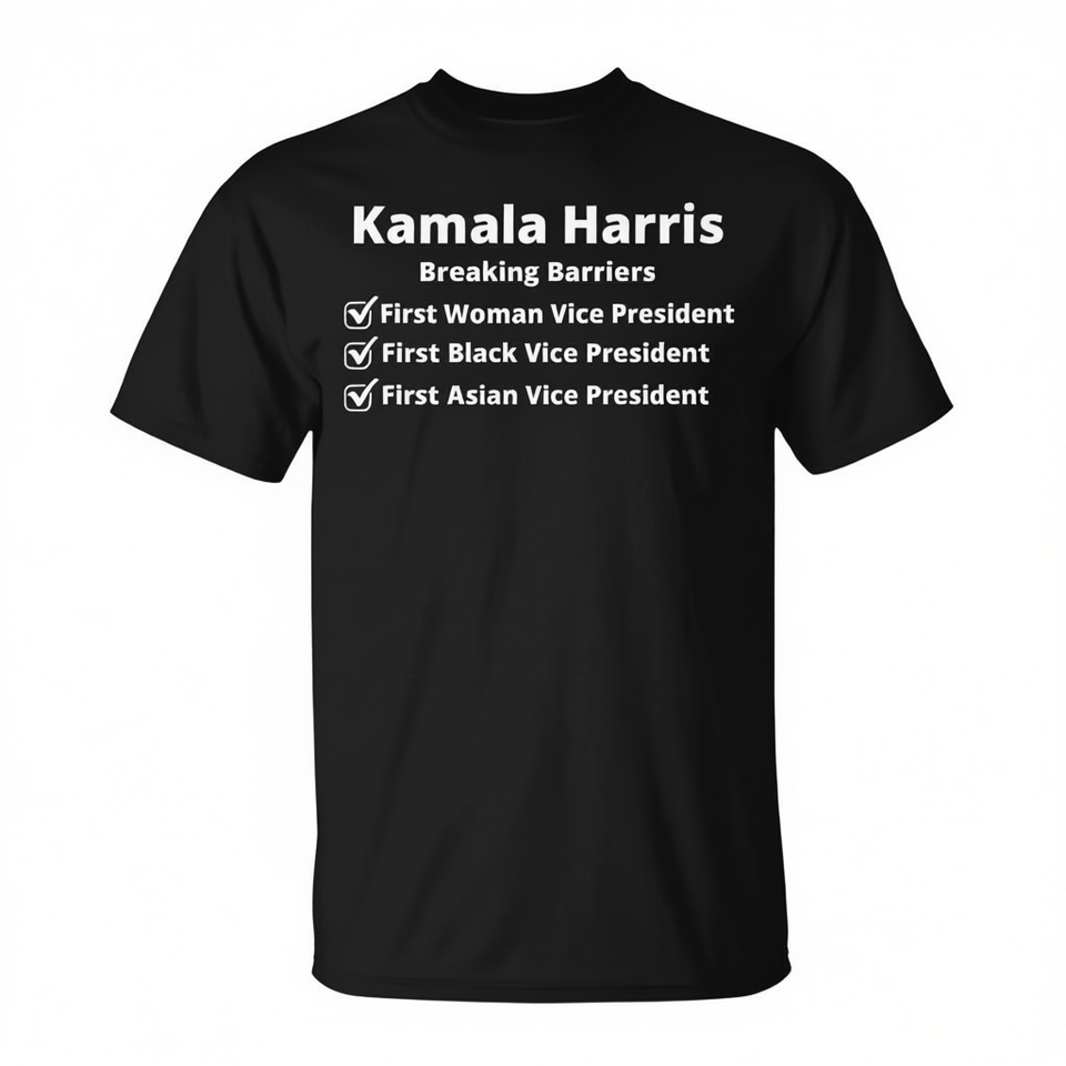 T-shirt Kamala Harris Breaking Barriers Nera da uomo, girocollo, manica corta, promozionale