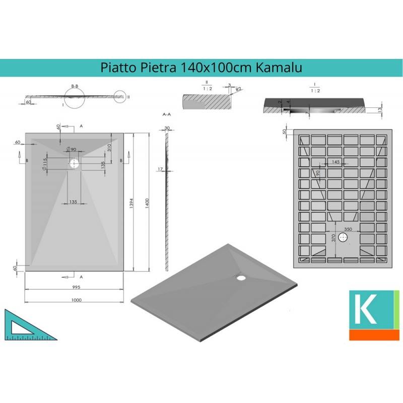 Kamalu 140x100 moderno piatto doccia con effetto pietra nera Color ardesia acrilico pietra artificiale resina SMC per il bagno Hotel