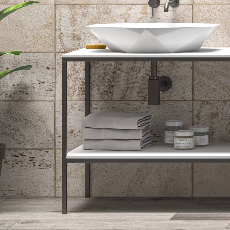 Mobile da Bagno in Metallo Kamalu 175cm con Due Ripiani Resistenti all'Acqua e Specchio LED Design Moderno NET-175