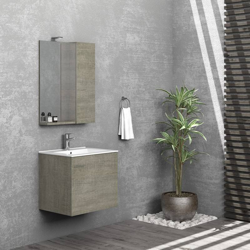 Mobiletto da bagno classico da 60 cm BT-60 Kamalu con porta in legno massello resistente all'acqua con lavabo a specchio