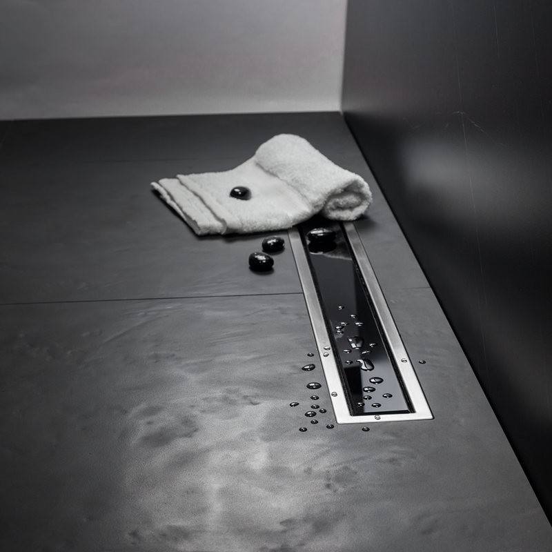 Kamalu CN-300 30cm di scarico lineare pavimento in acciaio inox con copertura in vetro nero per il bagno e la cucina pavimenti